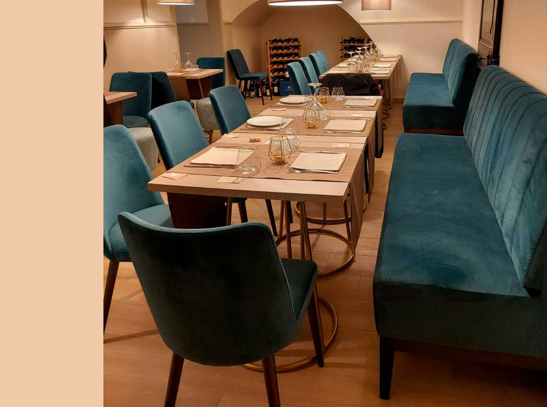 La banquette Pompella Madera fait partie de nos solutions de banquettes restaurant modulables sur mesure, conçues pour offrir confort, flexibilité et cohérence esthétique dans les espaces professionnels. Grâce à la modularité de ses éléments, elle permet de créer des compositions adaptées à chaque configuration de restaurant, hôtel ou lounge.
