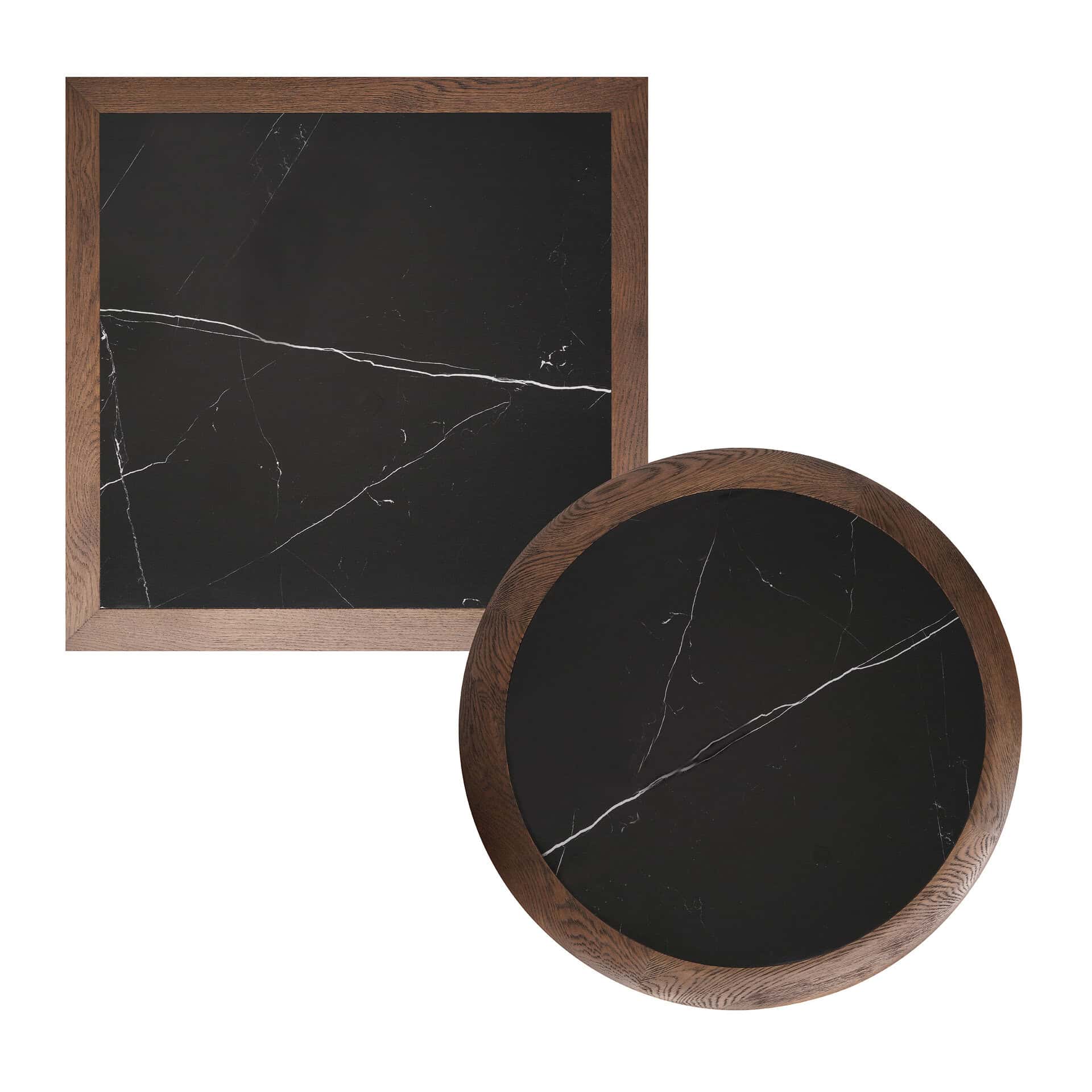 Le plateau de table Romeo en chêne avec finition céramique effet marbre noir associe un design sophistiqué à une grande robustesse, idéal pour les restaurants, cafés et hôtels.